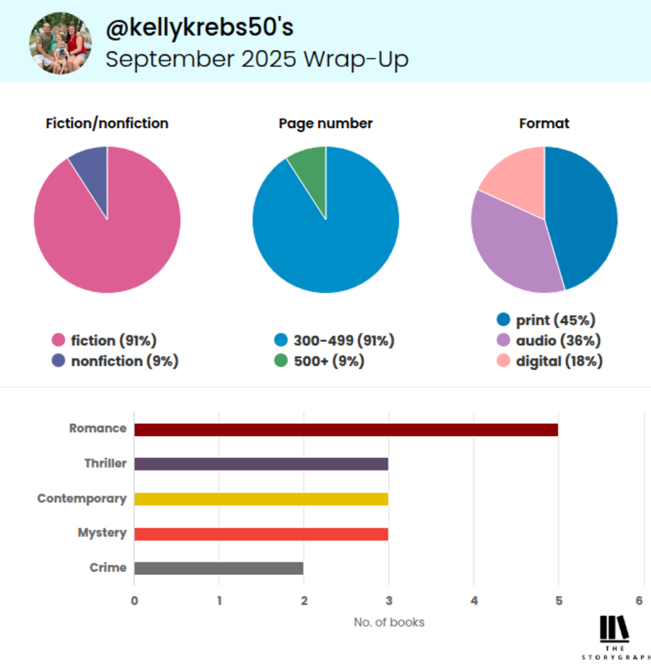 My September 2025 reading goals were to read 12 books, 4 physical books, send 4 reviews to NetGalley, and read a YA book for my genre monthly challenge. I completed 3 of my 4 goals this month.